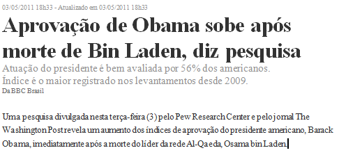| Noticia do G1, a respeito da popularidade de Obama. |